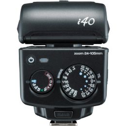 The Nissin i40 Flash is a shoe-mounted, compact flash unit designed for Canon cameras featuring E-TTL / E-TTL II functionality. It features a guide number of 131' at ISO 100 and in the 105mm position for providing excellent coverage within a zoom range of 24 to 105mm, or down to 16mm with the built-in wide-angle diffuser. Also, this unit features an LED light suited for video work with 9 output levels.